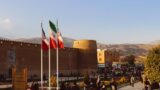 A woman in traditional attire holding a Japanese lantern against a backdrop of Japanese writings. バズ